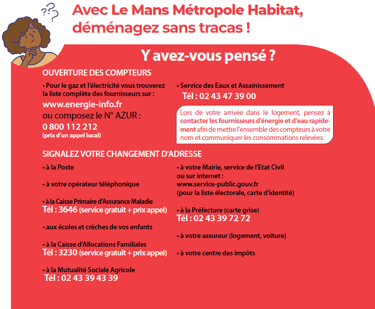 Retrouvez ci-dessous le détail des démarches à effectuer lors de votre emménagement