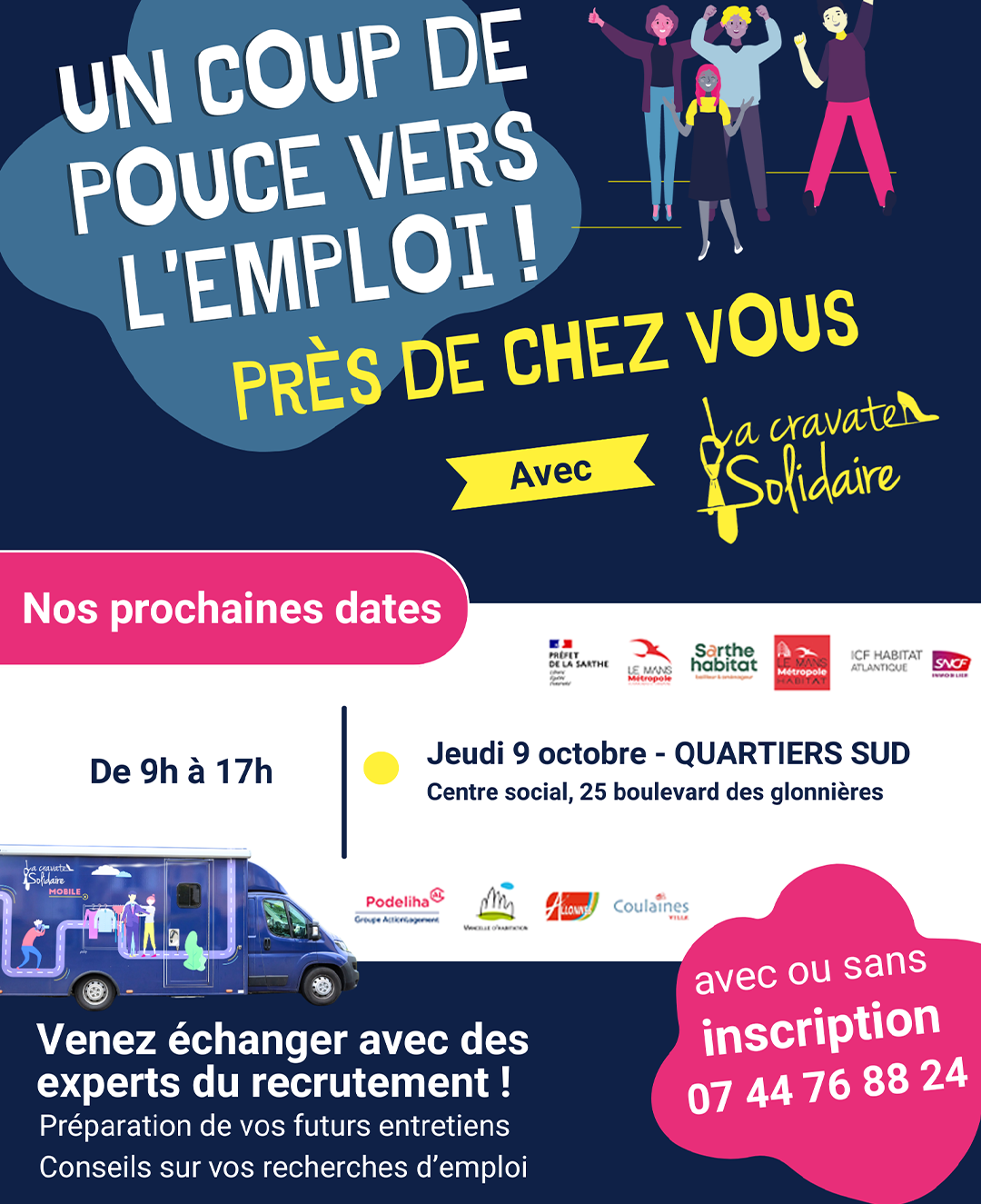 Le Mans Métropole Habitat poursuit son engagement auprès de La Cravate Solidaire, en renouvelant son partenariat pour l'événement "Coup de Pouce vers l'Emploi", ce jeudi 9 octobre 2025.